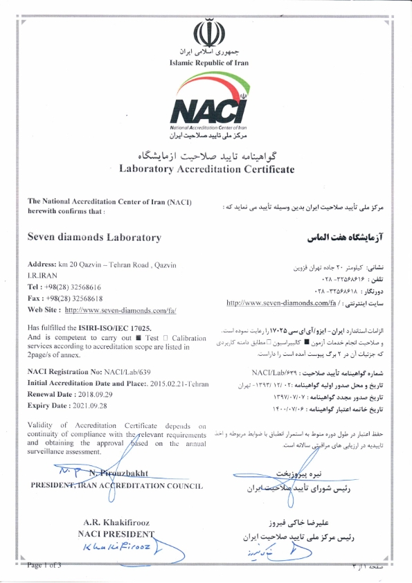 مجموعه آزمایشگاههای شرکت صنایع هفت الماس با انجام آزمایشهای تخصصی در زمینههای مختلف، به منظور حصول اطمینان از صحت کیفیت مواد ورودی، بررسی عملکرد فرایندهای تولیدی و نیز انطباق محصولات تولید شده با استانداردهای ملی و بین المللی، فعالیت مینماید.این آزمایشگاه با اخذ گواهینامههای معتبر همچون گواهینامه تایید صلاحیت آزمایشگاه مطابق با استاندارد ISO 17025 از سازمان ملی تایید صلاحیت ایران از سال 1393 و نیز گواهینامه آزمایشگاه همکار از سازمان ملی استاندارد استان قزوین، در راستای ارتقای سطح کیفی، صحت و دقت گزارش نتایج آزمایشگاهی، قدم بر داشته است.